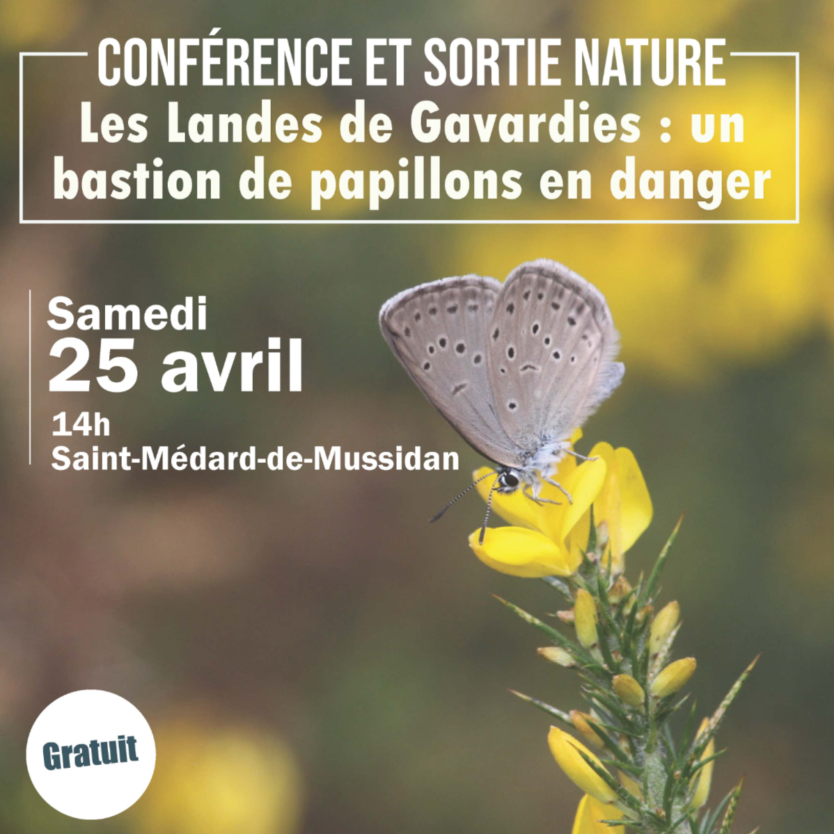 Présentation en salle des papillons de jour en lien avec le PNA Papillons et mise en lumière des enjeux locaux, suivi d'une visite du site des Landes des Gavardies et recherche des papillons.