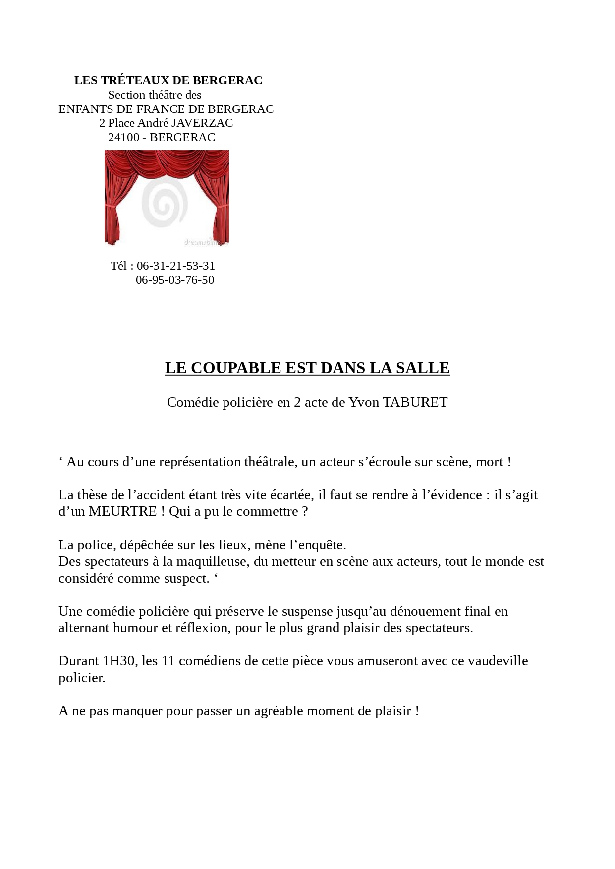Renseignements : 06 31 21 53 31